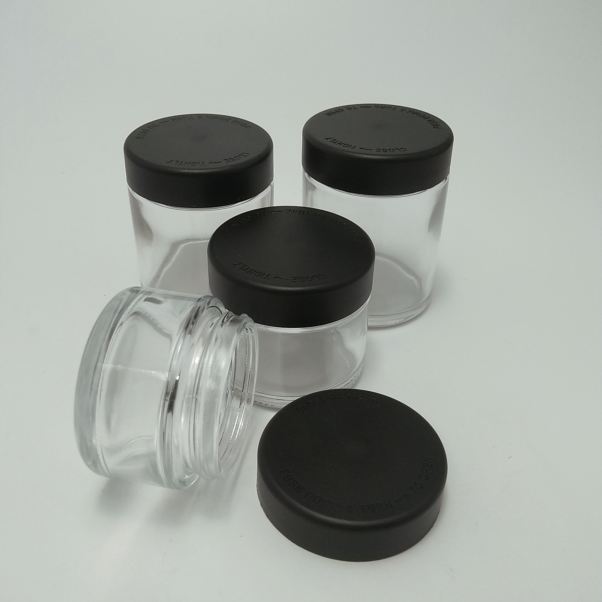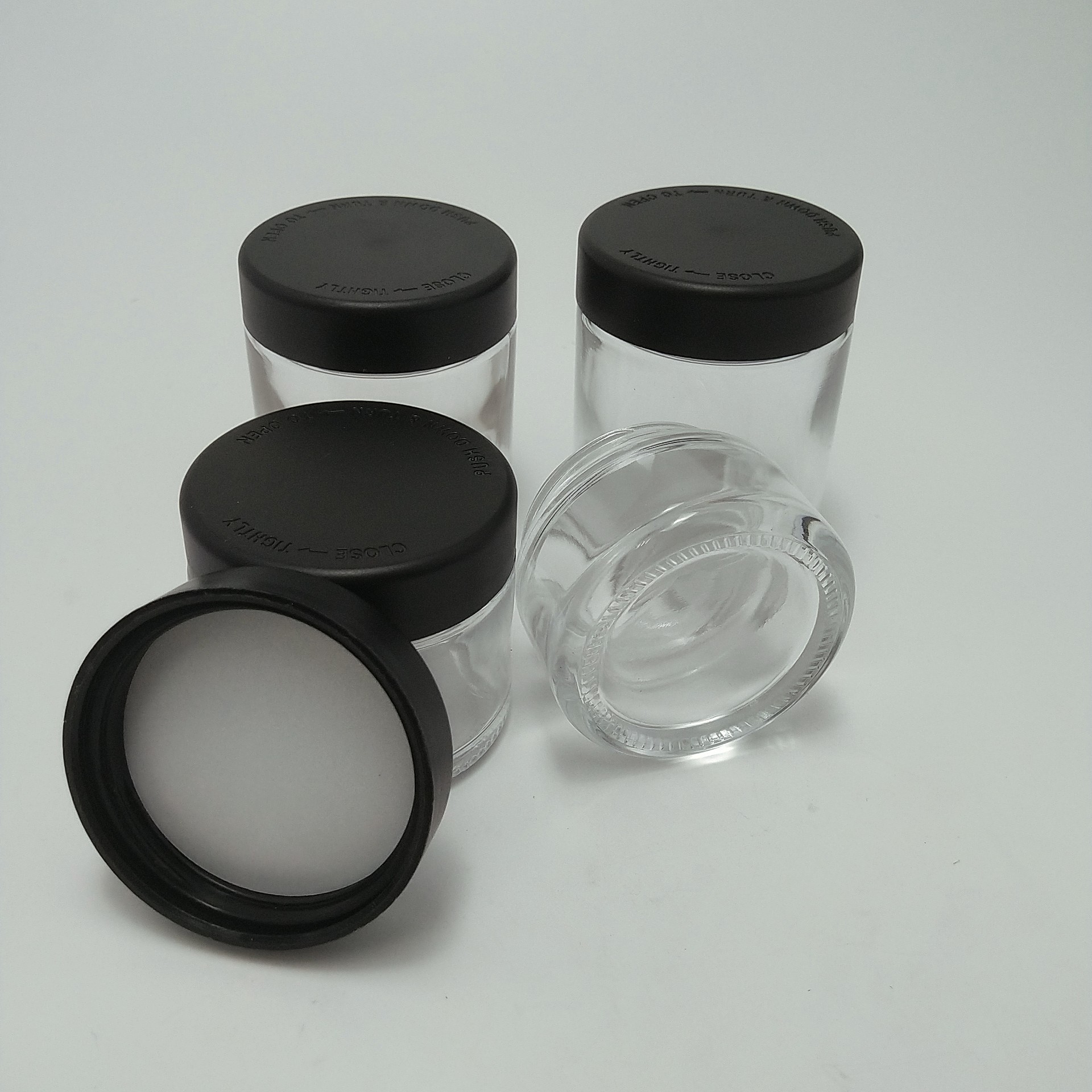 x| Artikel | 3oz kindprofessionelle klare Behälter Kräuter Blumen Glas Glas CBD Blumen Glas | Material | Clear Glas Jar + Safety Child Proof Deckel |