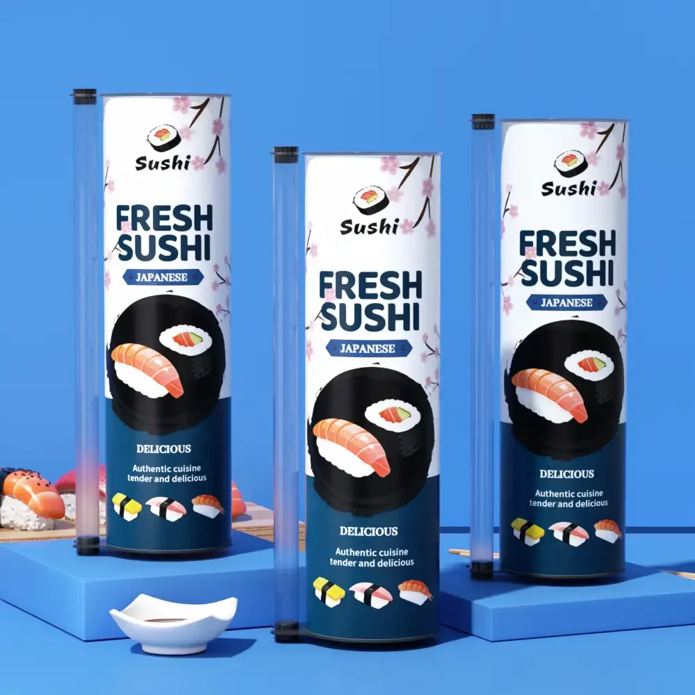 | Hervorheben | Umweltfreundlicher Sushi-Papierröhrenbehälter,Push-Pop-Lebensmittelverpackungsröhre,Zylindrischer Sushi-Behälter mit Rohr |